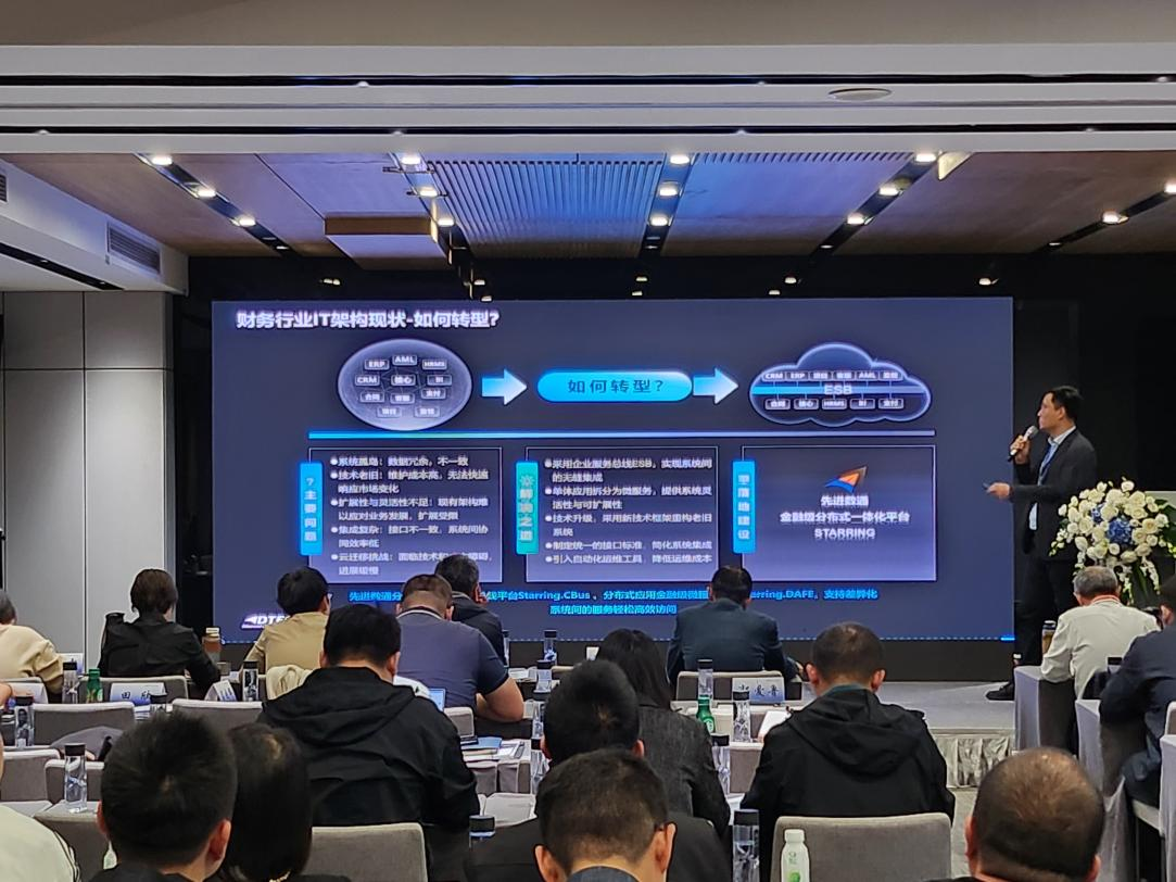 evo真人视讯代表讲师郭钰以《昆仑与evo真人视讯ESB解决方案助力财务行业创新与架构转型》为主题作发言分享。他深入剖析了当前财务行业IT架构面临的挑战,包括系统孤岛、技术老旧、扩展性不足等问题,并提出了基于企业服务总线(ESB)和微服务架构的转型方案。