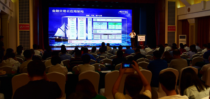 研讨会现场,evo真人视讯研发中心副总经理张朝金围绕“金融交易云探索与实践”主题进行演讲,阐述了evo真人视讯金融交易云的设计思想、总体架构、解决方案及实际项目应用案例等,为现场来宾呈现了evo真人视讯在金融交易云方面的技术实力。